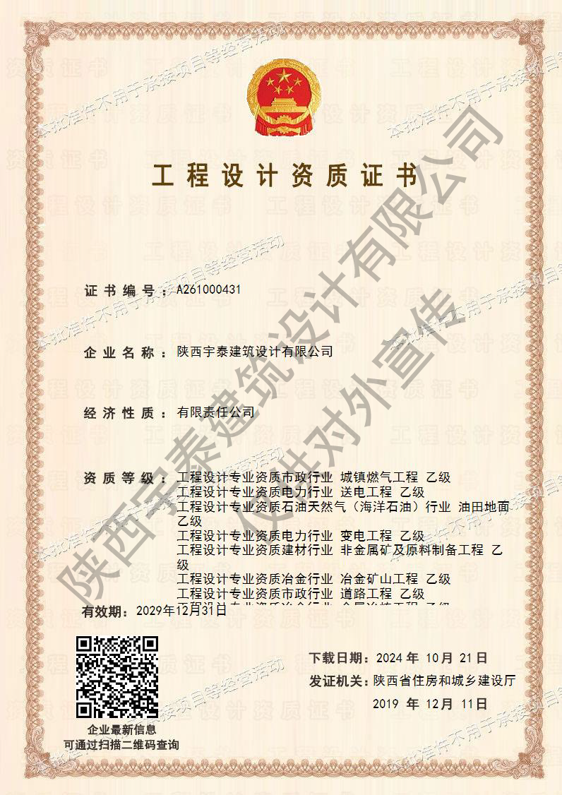 工程設計資質(zhì)證書